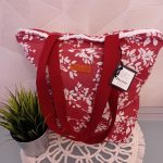 Bolso de hombro tipo «tote» que destaca por su diseño geométrico y colorido.
