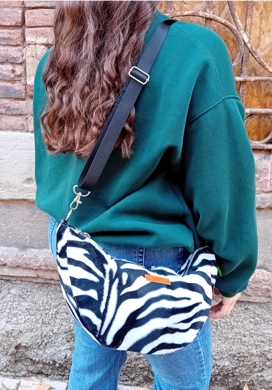 Bolso media luna, fabricado a mano artesano, con un bolsillo interior.