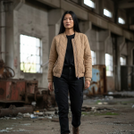 - Corte y Ajuste: Tiene un corte recto que llega a la altura de la cadera, ofreciendo una silueta entallada pero cómoda.