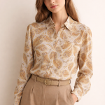 Camisa un diseño que juega con el contraste de texturas y estampados. Es una prenda ideal para quienes buscan un estilo «business casual» con un toque audaz.
