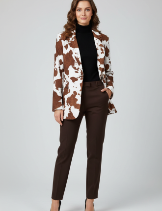 Esta chaqueta presenta un diseño contemporáneo que fusiona la estructura de un blazer con la comodidad de un cárdigan, ideal para un estilo «smart casual» o de oficina relajada.