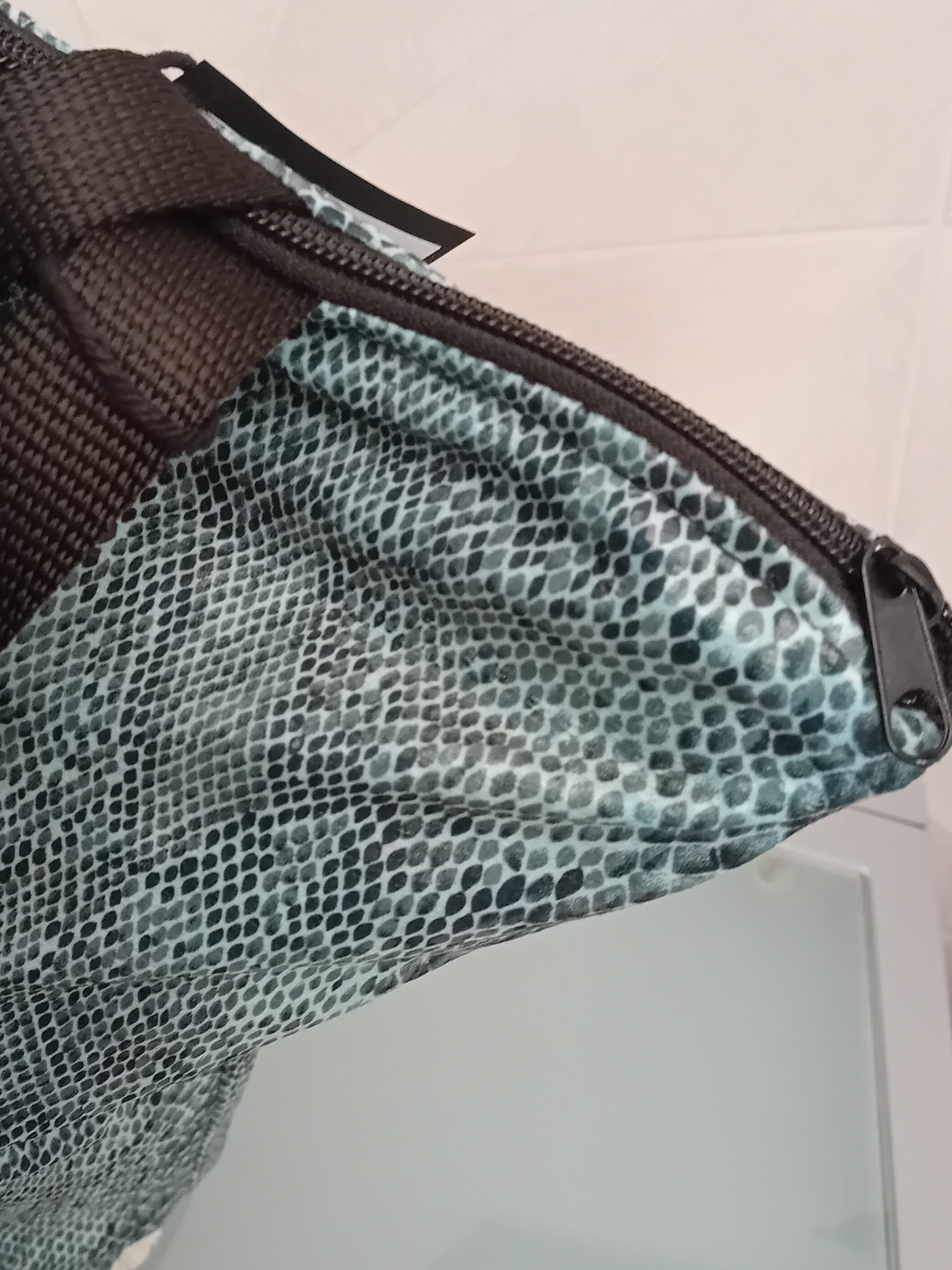 Totebag estampado serpiente, interior en negro con bolsillo bolsillo cierre de cremallera.